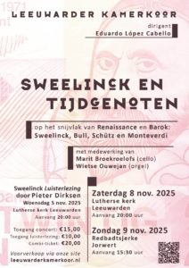 Het Leeuwarder Kamerkoor brengt een hommage aan de grootste componist die Nederland heeft voortgebracht: Jan Pieterszoon Sweelinck. Met twee concerten en een luisterlezing!